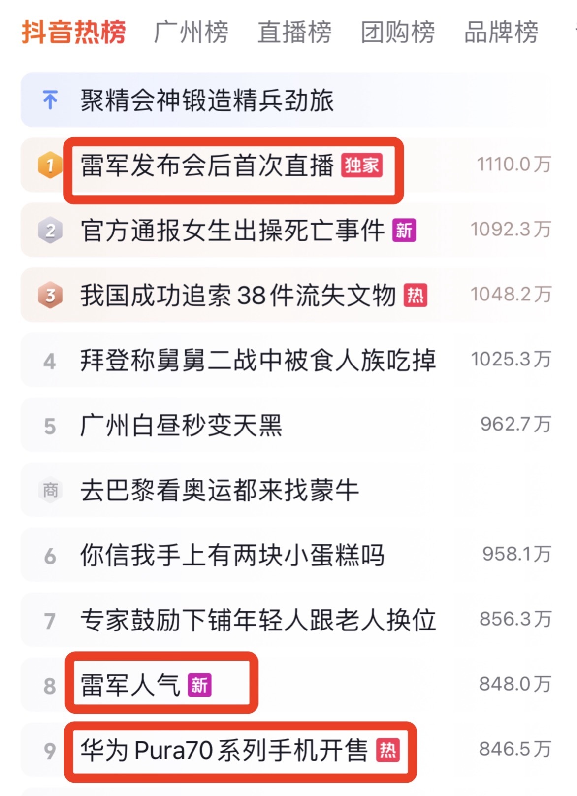 在热榜上,“雷军东说念主气”“雷军顶流”词条居高不下,一度压过了“华为P70开售”。